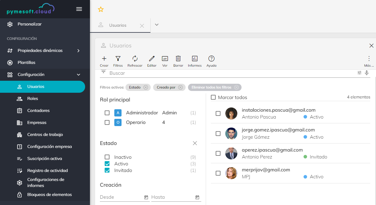 ¡IMPORTANTE! El resto de usuarios, consiguen el estatus de usuario de la cuenta, a partir de un proceso de invitación que pone en marcha la persona que actúa como Administrador de la cuenta del cliente. (Contacto administrativo que se indicó al contratar la suscripción). Esta persona, básicamente registra en el sistema a las personas, notificándoles mediante correo electrónico, que han sido designadas para utilizar la aplicación.