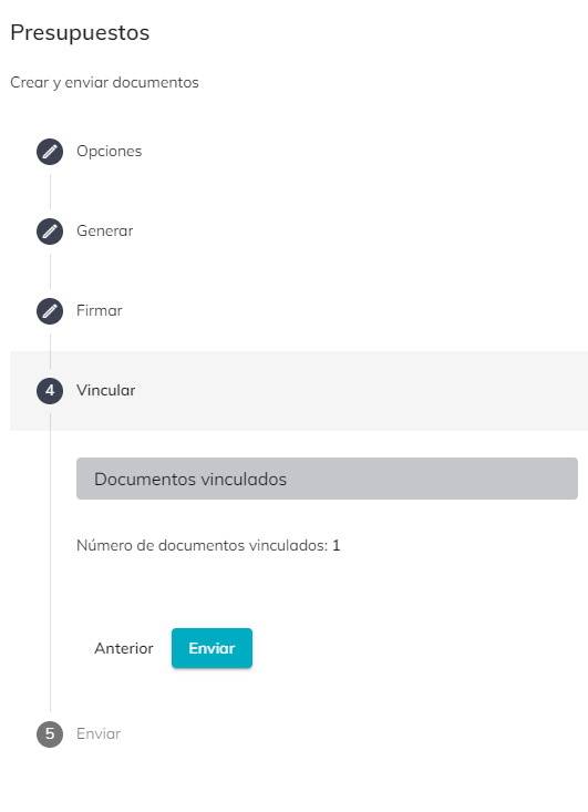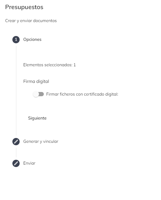 Una vez seleccionados uno o varios documentos se habilita la opción enviar , que muestra el asistente para el envío de documentos.