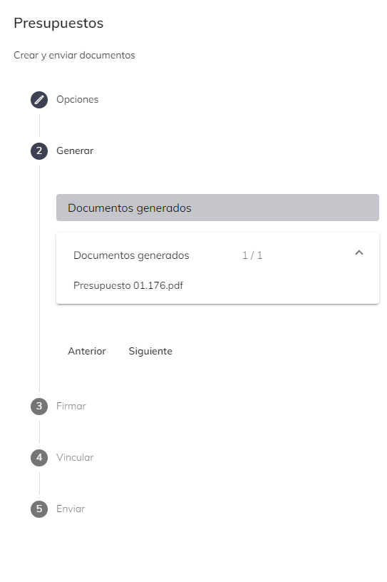 En el segundo paso se generan los ficheros y se descargan para ser firmados.