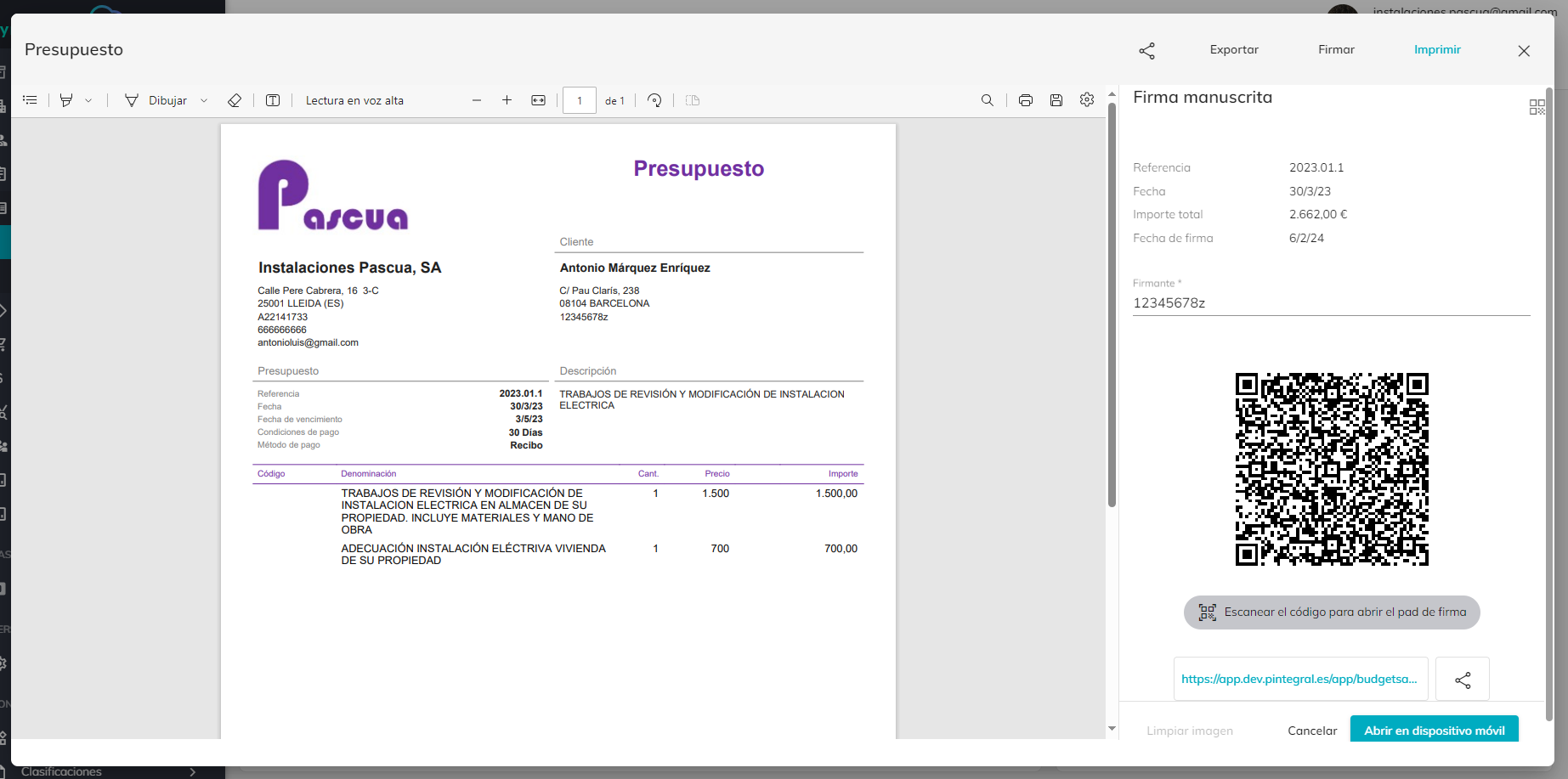 - La barra de herramientas de la presentación preliminar, dispondrá de un botón firmar si adquirió el módulo de firma. Haga clic en este botón para acceder al PAD de firma.
