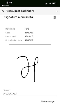 - Una vez abierta la vista, el cliente firmará encima de la superficie del móvil usando su dedo.